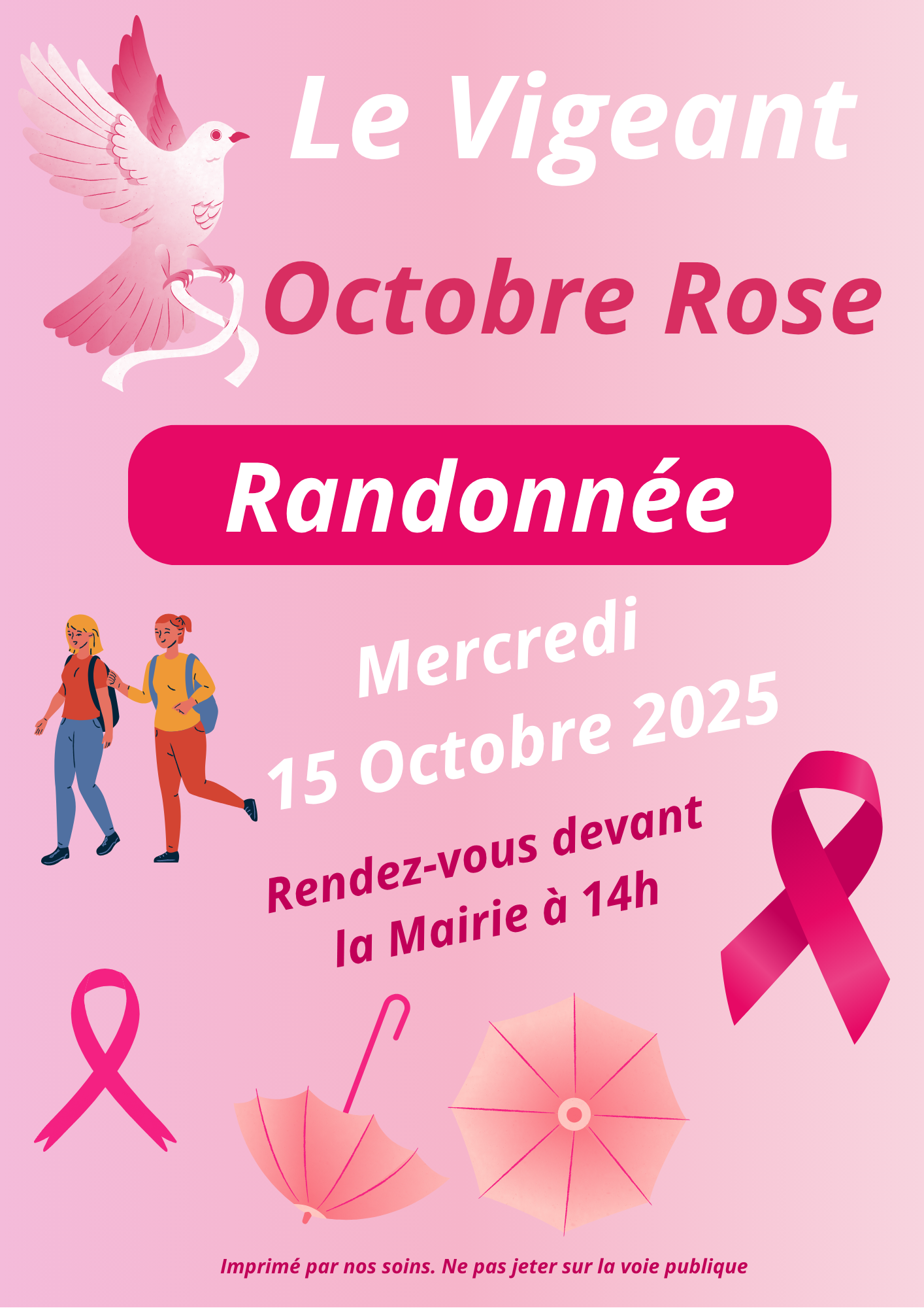 Randonnée dans le cadre d'Octobre Rose, rendez-vous devant la Mairie